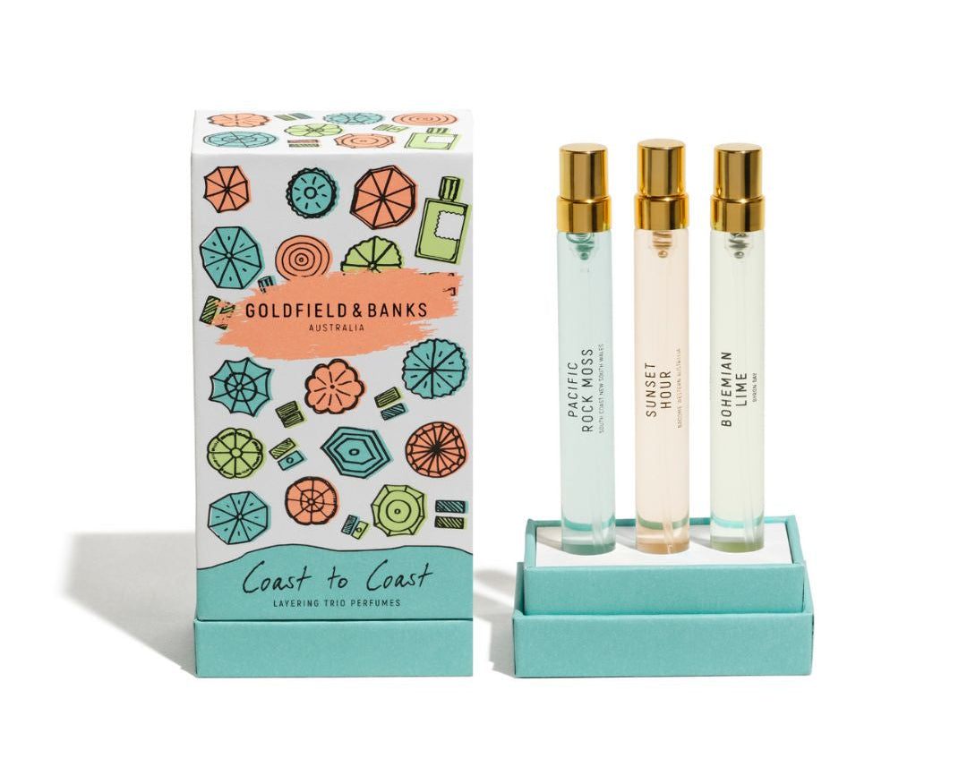 Coast to Coast is the annual celebration of Goldfield & Banks’ most sun-soaked fragrances—reborn for the season in vibrant, limited-edition packaging by artist Felix Nankivell.