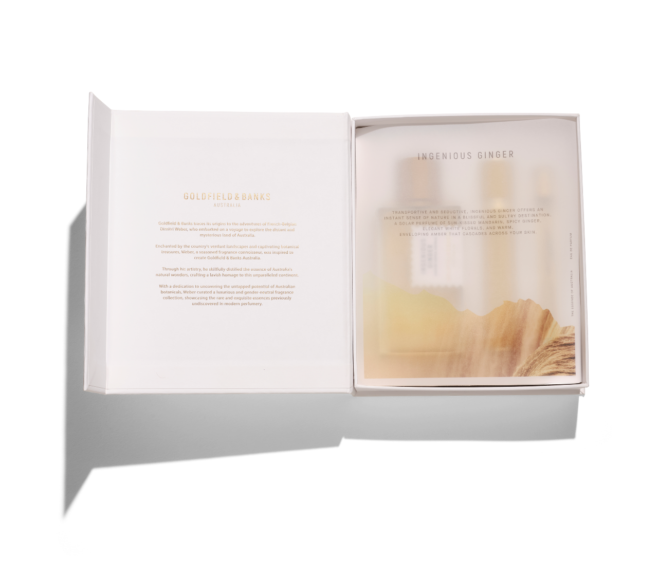 A luminous tribute to Australia’s botanical heritage, shaped with French elegance, Ingenious Ginger is bright, inspiring, and unforgettable.